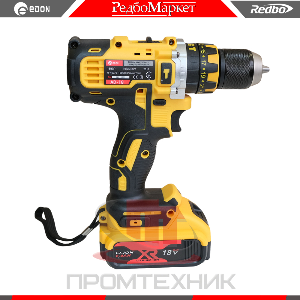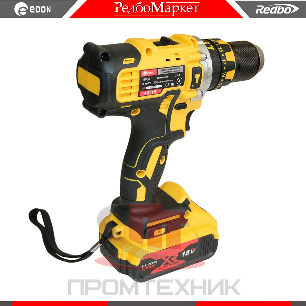 Комплект поставки: шуруповерт, 2 аккумулятора, зарядное устройство, набор насадок, пластиковый кейс.