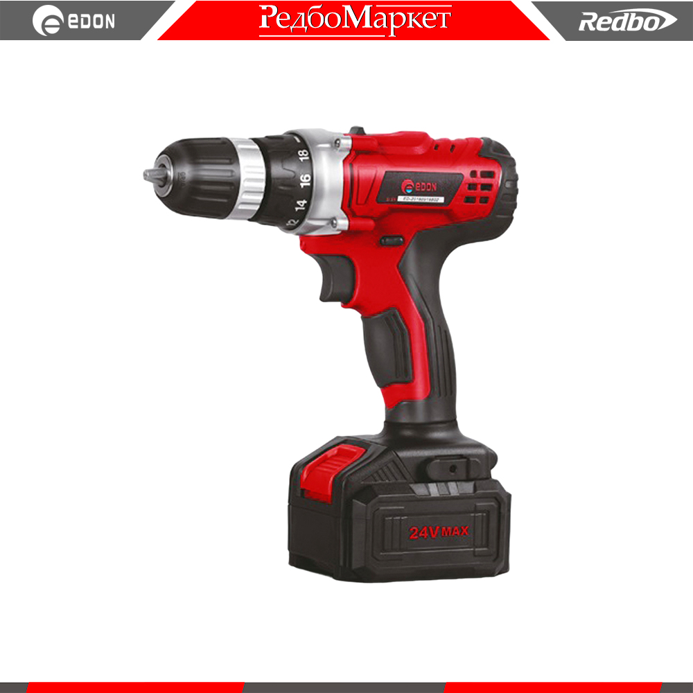 Дрель-шуруповерт аккумуляторная безударная Edon AD-24, предназначена для закручивания, отворачивания винтов и шурупов, сверления отверстий в различных конструкционных материалах (в том числе металле, дереве, пластмассе и т.д.)