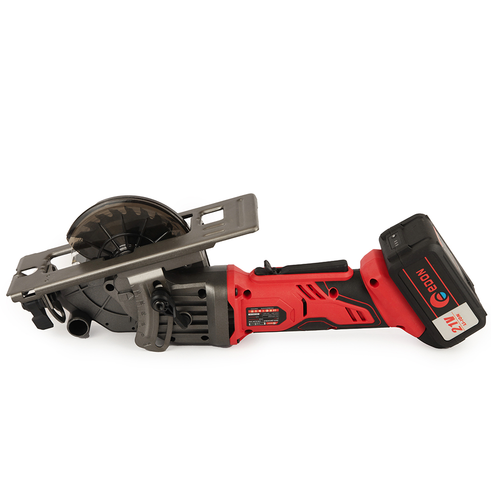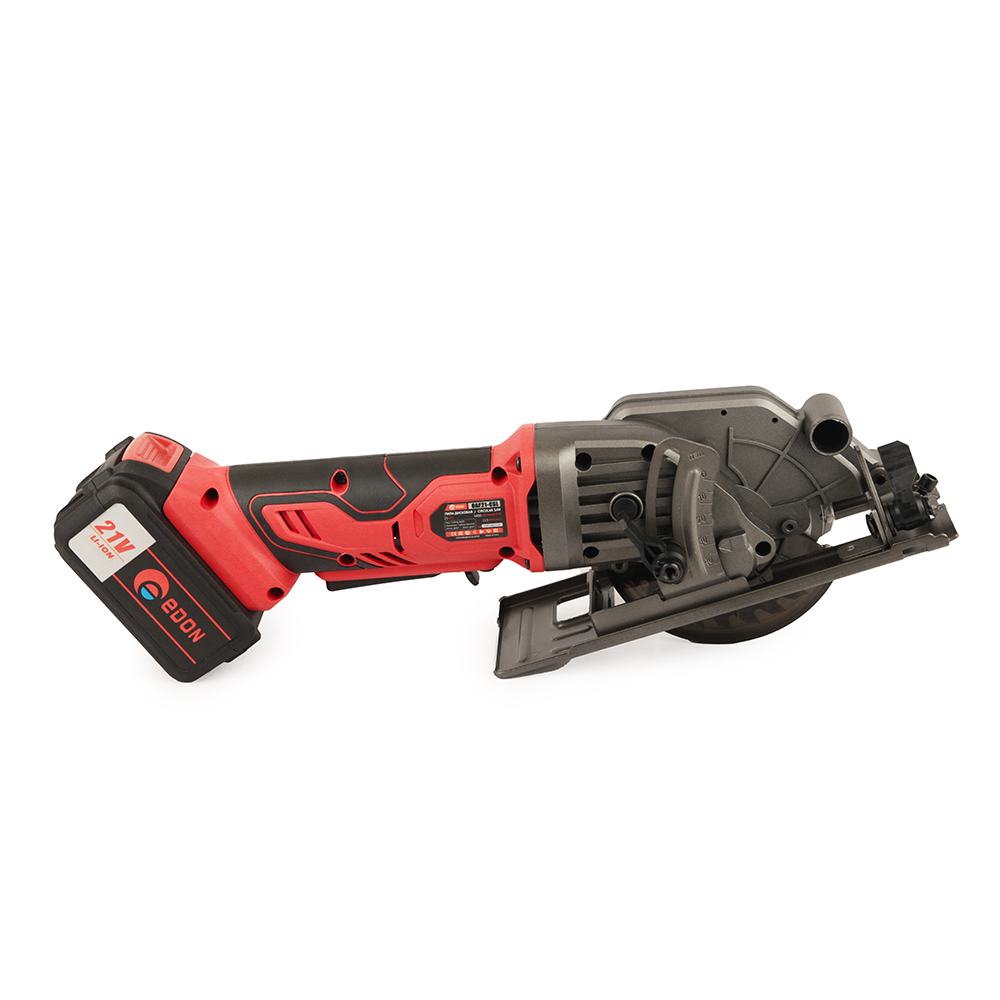 Аккумуляторная переносная дисковая пила OAF21-CSL предназначена для распиловки древесины, древесно-стружечных плит, мягких металлов, натуральных и искусственных камней. В качестве рабочего инструмента используется диск различного исполнения. Рабочий диск закрывают верхний неподвижный защитный кожух и самозакрывающийся нижний подвижный кожух. Защитное ограждение устраняет возможность от случайного прикосновения к пильному диску и направляет выброс опилок. Линейка с боковой направляющей предназначена при распиловке материала на заготовки заданной ширины, линейка фиксируется на основании зажимным винтом. В данной модели возможно установить глубину пропила при помощи фиксатора глубины пропила, путем ограничения перемещения нижнего подвижного кожуха относительно основания и контроля по шкале линейки.