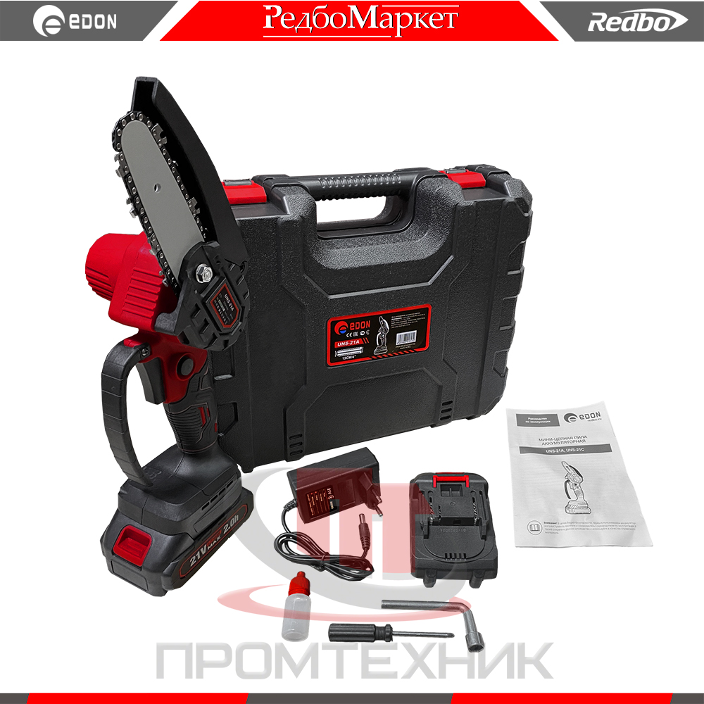 Благодаря своей аккумуляторной системе, цепная мини-пила Edon UNS-21A не требует подключения к сети, что делает ее идеальным инструментом для работы на участке, в саду или во время кемпинга.