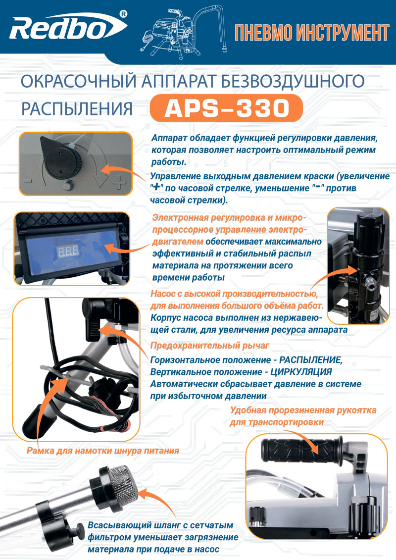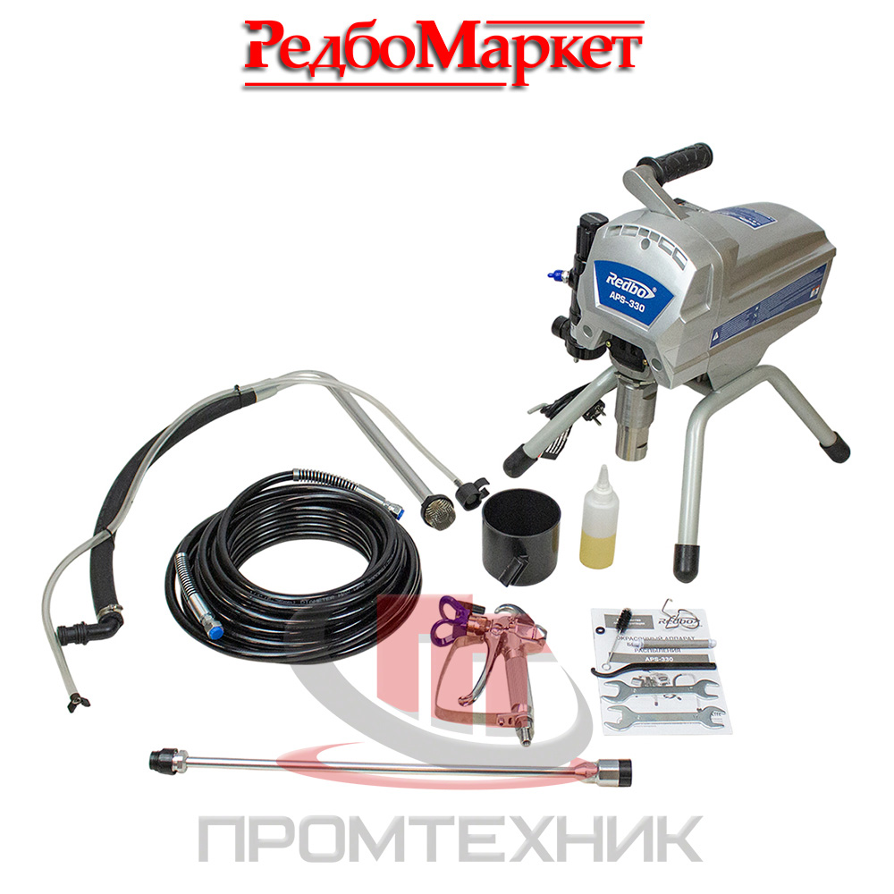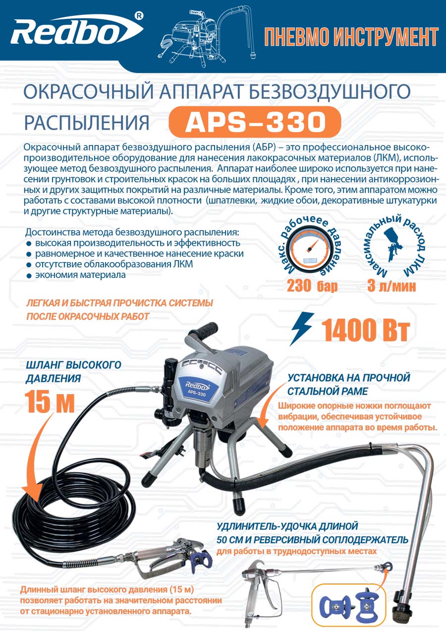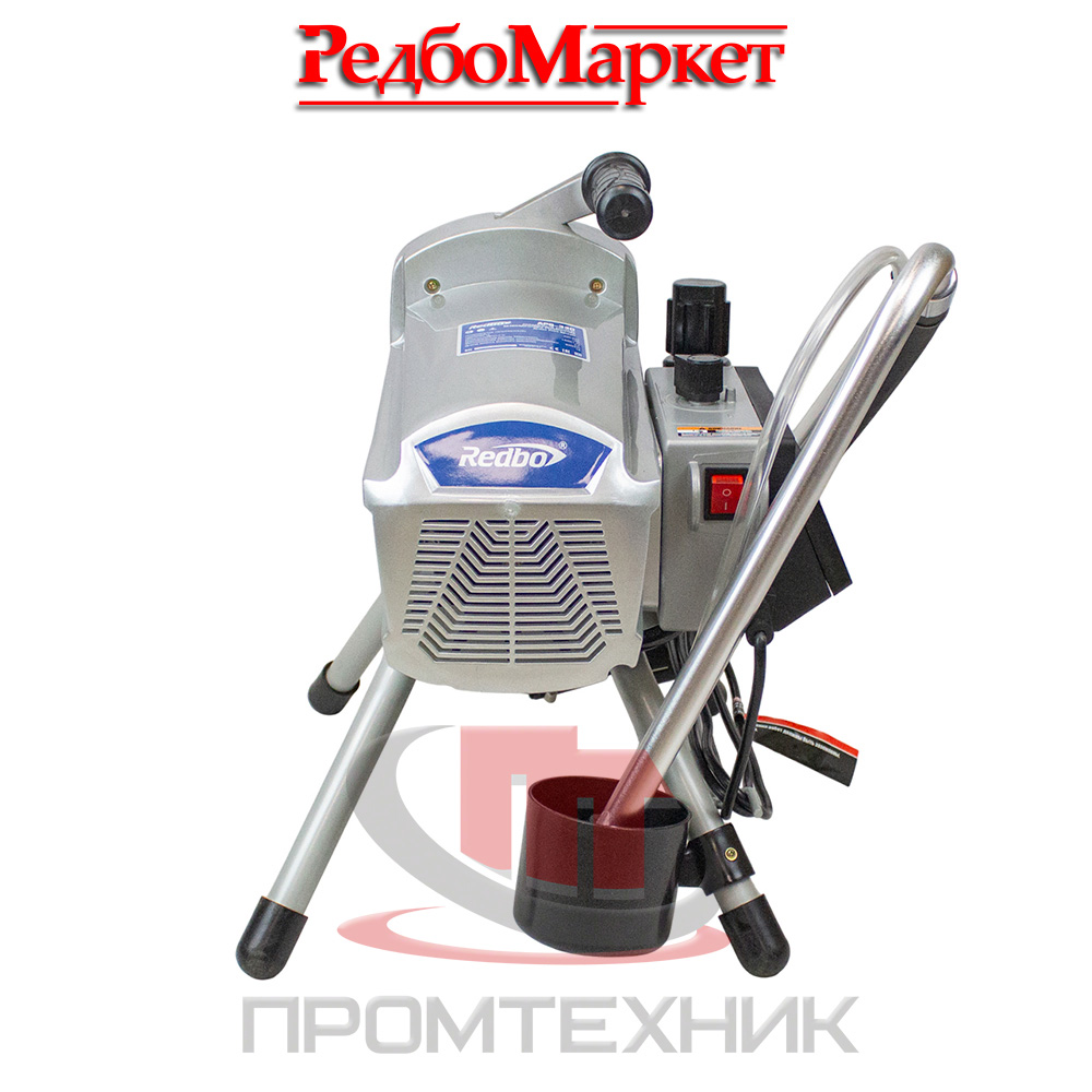 Аппарат в комплекте со всасывающей системой, шлангом высокого давления и краскораспылителем используется в отделочных работах при окраске поверхностей большой площади.
