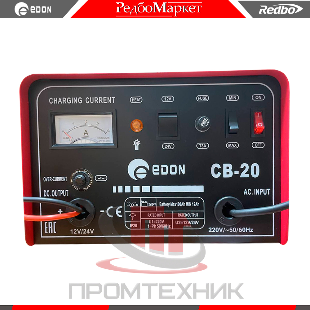Зарядное устройство Edon CB-20 подходит для использования в домашних условиях, на станциях технического обслуживания и для мобильного использования.
