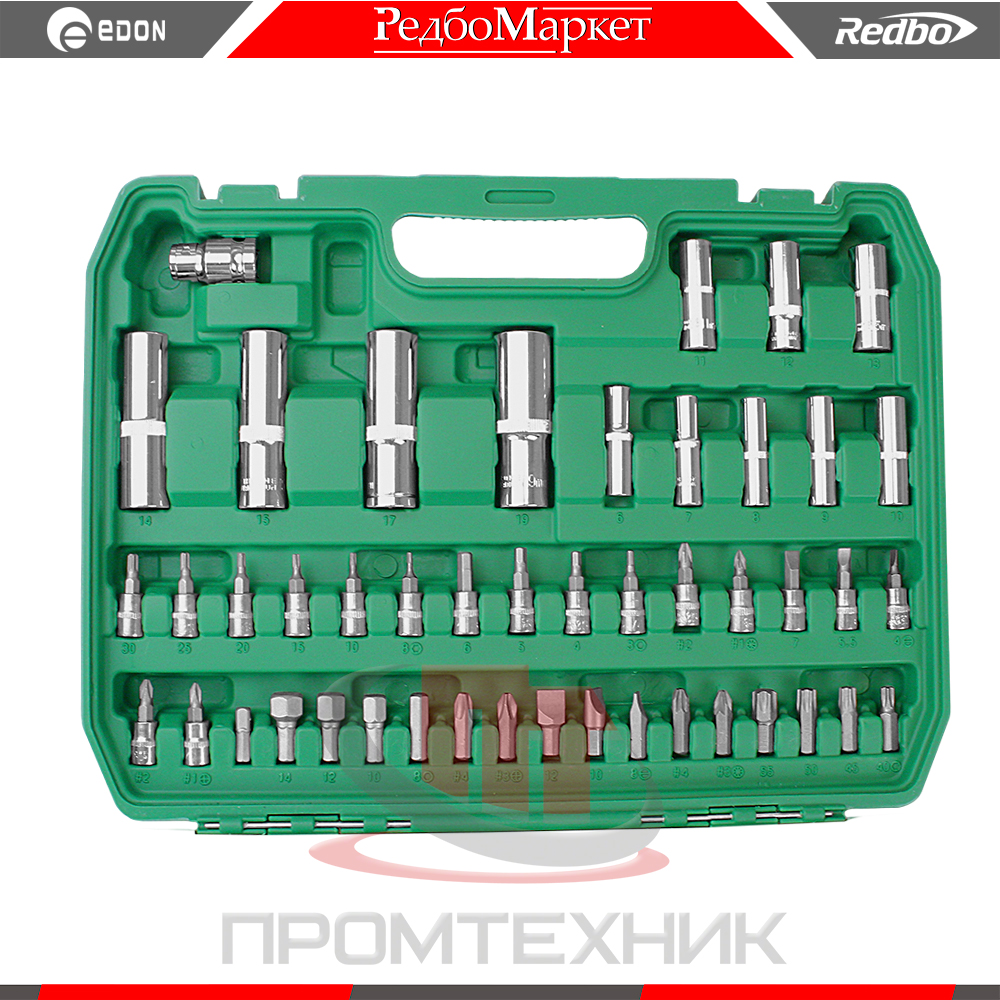 - отверточные торцевые головки 1/4'' (SL4,SL5,5,SL7, T8,T10,T15,T20,T25,T30,PH1,PH2,PZ1,PZ2,H3,H4,H5,H6) - 17 шт.;